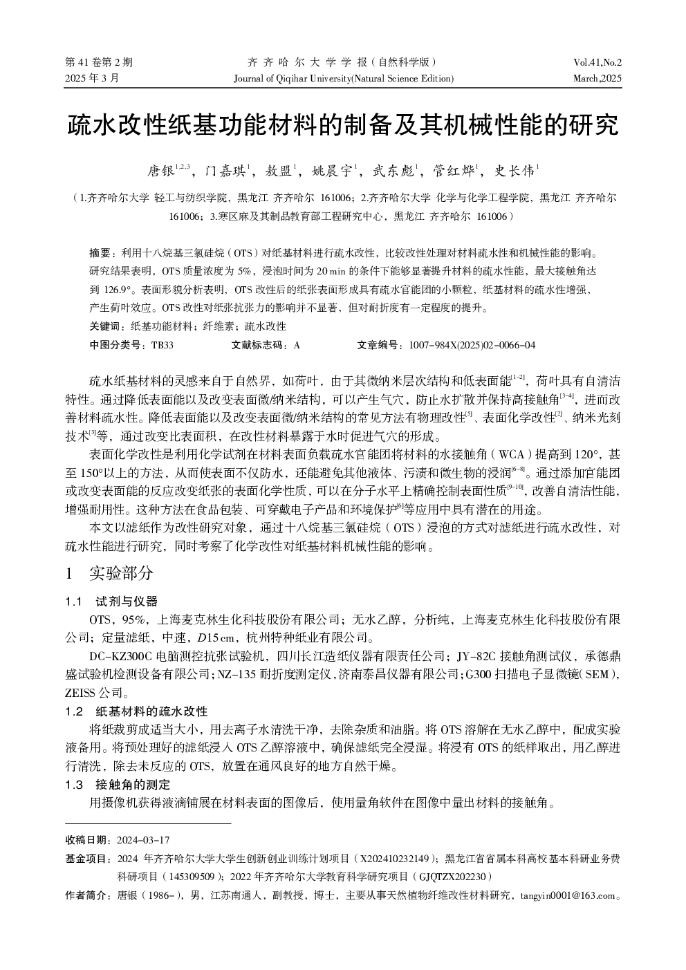 当前位置: 新材料创新  >  高端功能与智能材料  > 疏水改性纸基功能材料的制备及其机械性能的研究.pdf