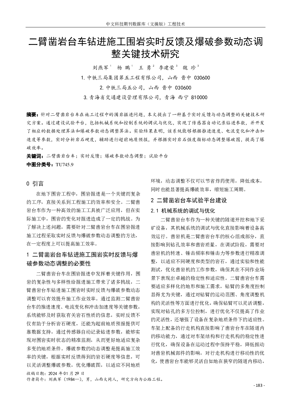 二臂凿岩台车钻进施工围岩实时反馈及爆破参数动态调整关键技术研究.pdf