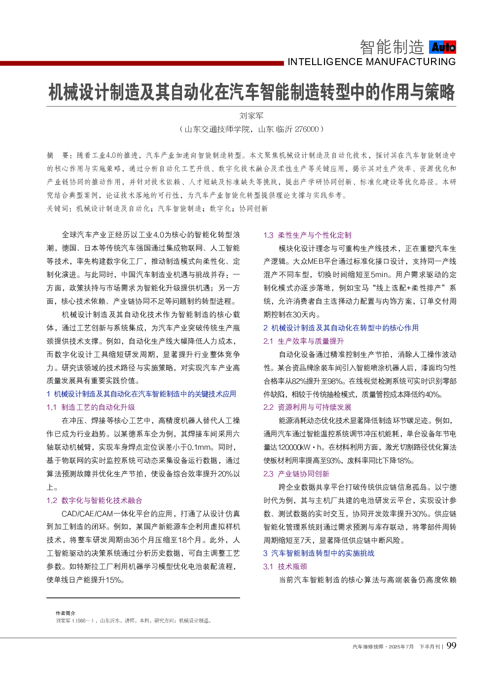> 机械设计制造及其自动化在汽车智能制造转型中的作用与策略 (1).pdf