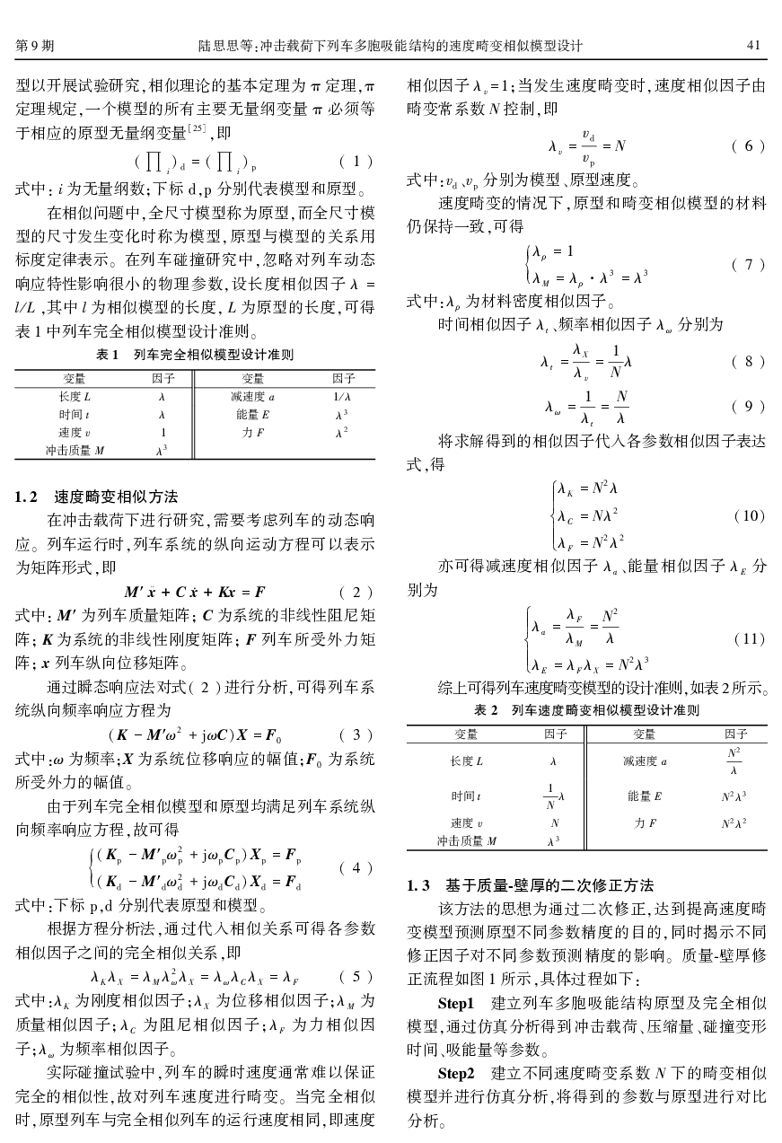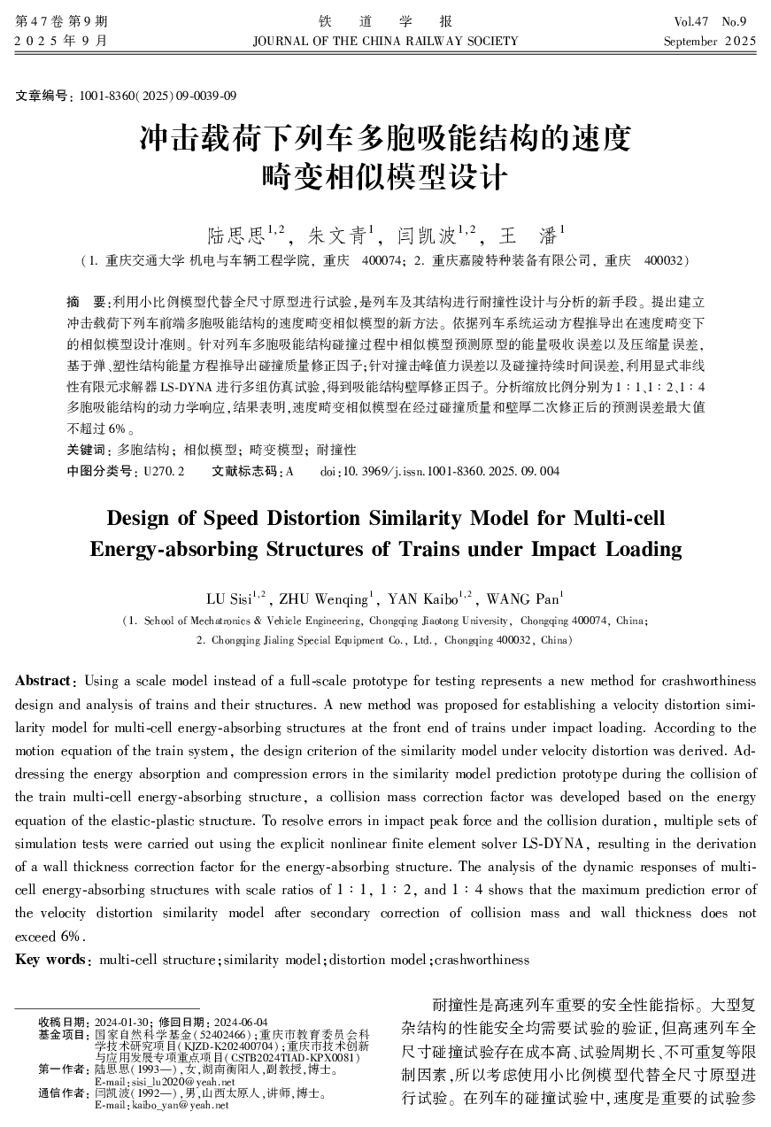 冲击载荷下列车多胞吸能结构的速度畸变相似模型设计.pdf