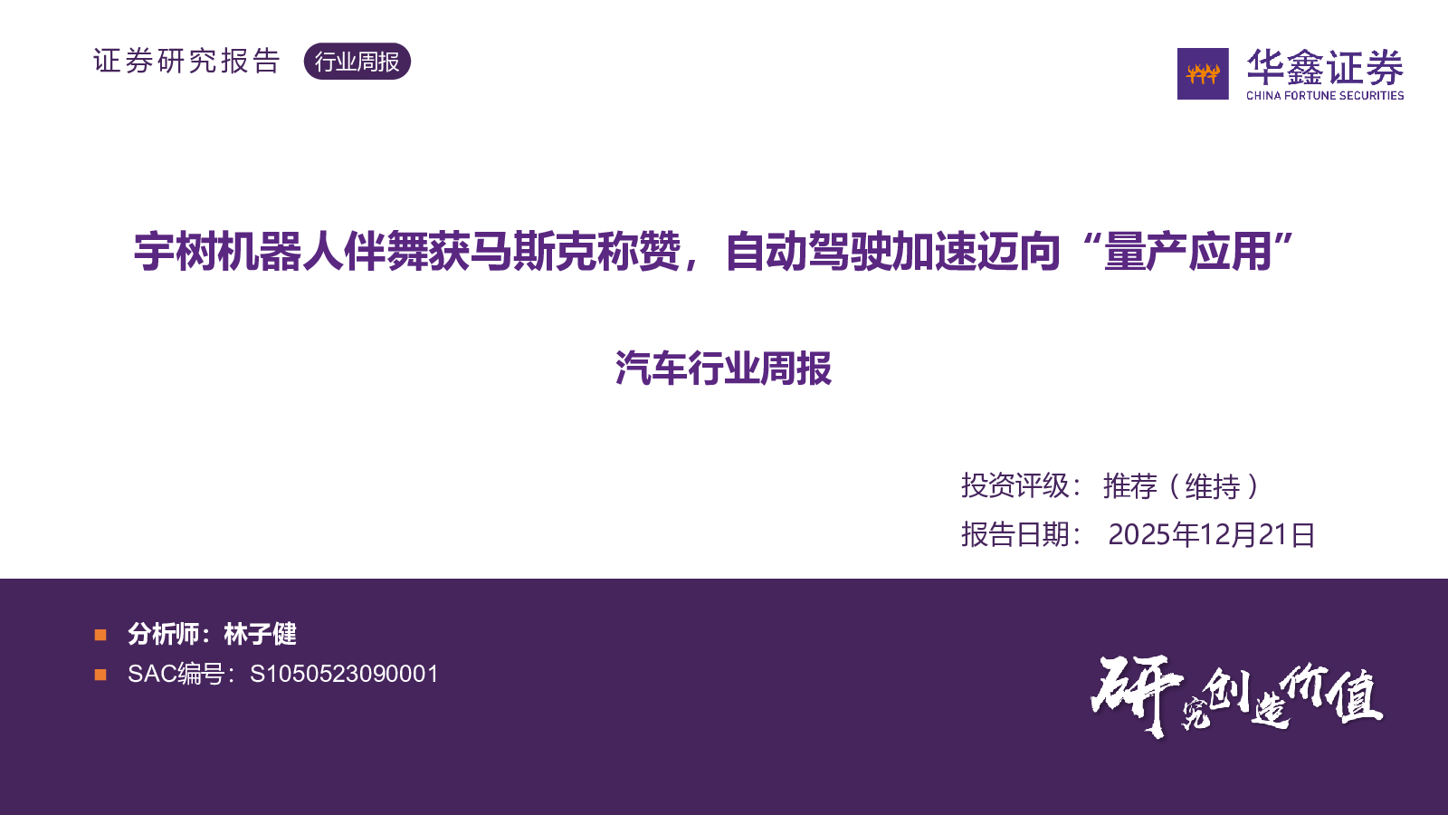 汽车行业周报:宇树机器人伴舞获马斯克称赞,自动驾驶加速迈向“量产应用”.pdf