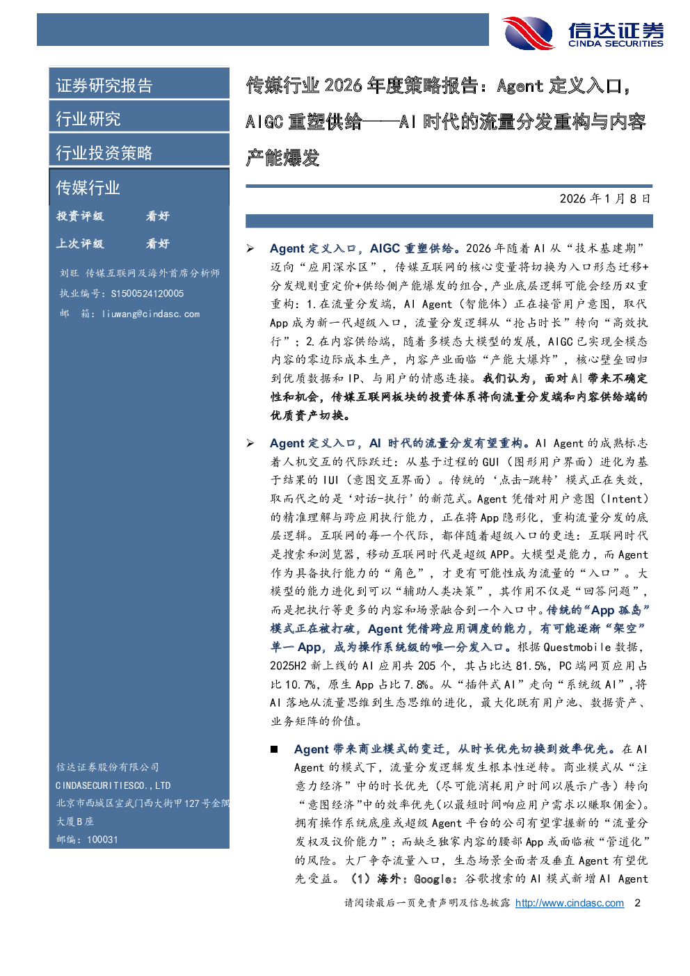 当前位置: 金融&保险&公司治理  >  市场营销/公关  > 传媒行业2026年度策略报告:Agent定义入口,AIGC重塑供给――AI时代的流量分发重构与内容产能爆发.pdf