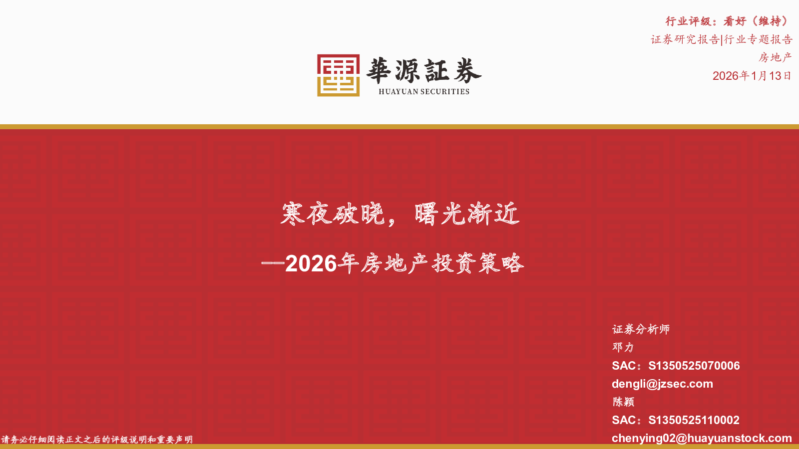 当前位置: 智慧绿色建筑&基础设施  >  不动产  > 华源证券:2026年房地产投资策略:寒夜破晓,曙光渐近.pdf
