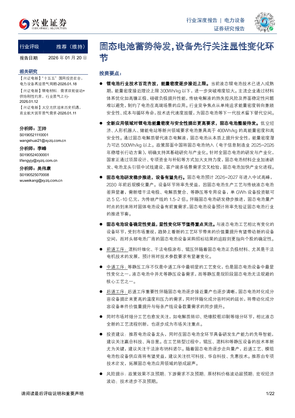 兴业证券:固态电池蓄势待发,设备先行关注显性变化环节.pdf