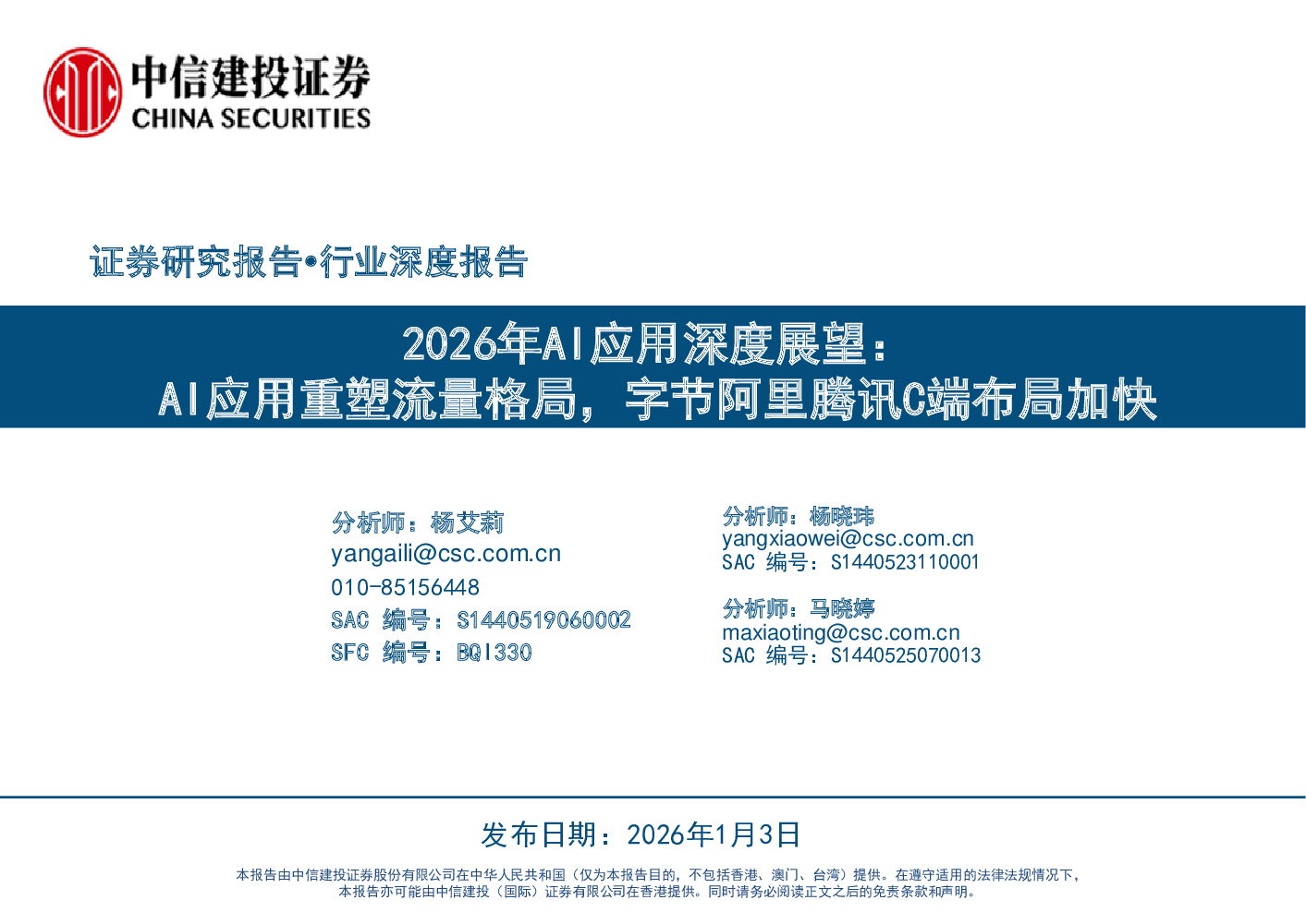 2026年AI行业应用深度展望:AI应用重塑流量格局,字节阿里腾讯C端布局加快.pdf