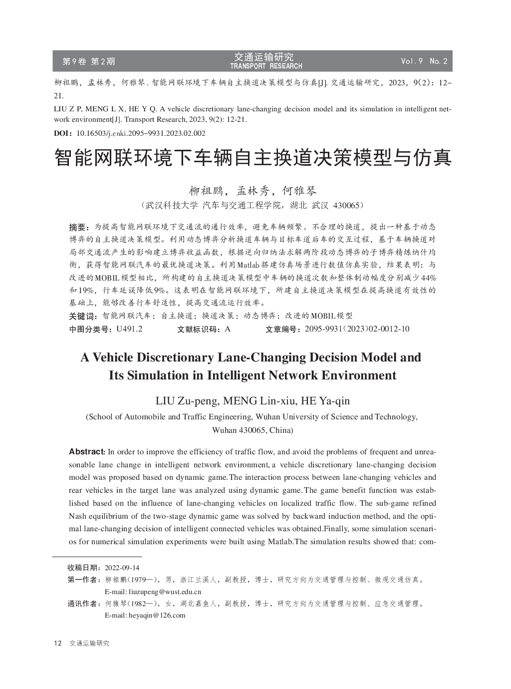 智能网联环境下车辆自主换道决策模型与仿真.pdf